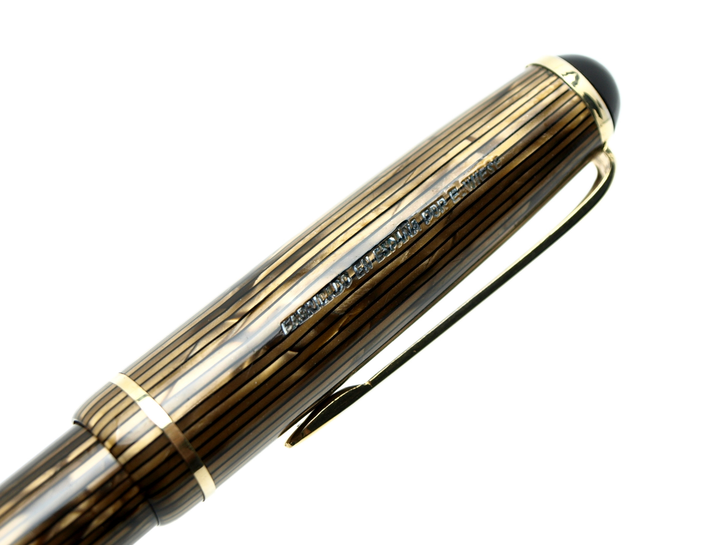One of the most special Montblanc pens, a wonderful extremely rare version of the Spanish Montblanc factory, the model No. 220, in mint condition, no scratches, no cracks, perfectly preserved. The pen was made in the early 50's, by the small Montblanc factory in Barcelona Spain. After the WWII, Spain did not allow any import of any German made goods, so in order to resurrect Montblanc in this market, a German family Wiese opened a small factory which produced the Montblanc pens with all patent rights from Montblanc Germany in Hamburg. The pen is based on the 50's Montblanc pens such as 342, 344 and similar models, but unlike those which are piston fillers, this one is a rare push button filler. On the side of the cap there is an imprint saying "Fabricado En Espania Fur E. Wiese", which translates to "Made in Spain for E. Wiese" which is same as saying "Made in Germany for Montblanc", which proves the trouble this factory had to go through in order to be allowed to manufacture and sell these products. There are collectors who claim that this exact imprint is found on some pens made by Montblanc in Hamburg Germany and were secretly imported in Spain as being made in Spain in order to avoid the german goods import ban in Spain.