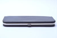 Vintage High Quality Genuine Leather Black & Grey Steel Frame Pouch Case for 3 Fountain or Ballpoint Pens Item ID: CAS-028