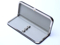 Ask a question about Vintage High Quality Genuine Leather Black & Grey Steel Frame Pouch Case for 3 Fountain or Ballpoint Pens.